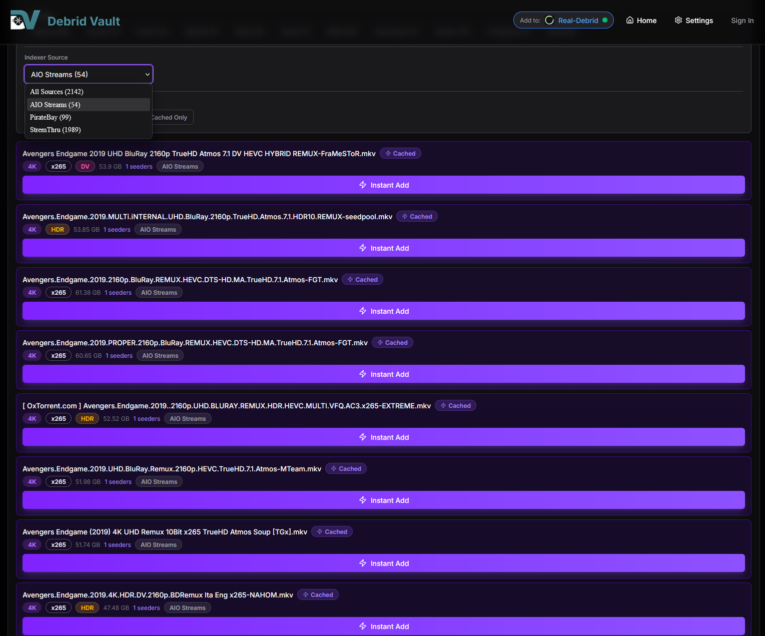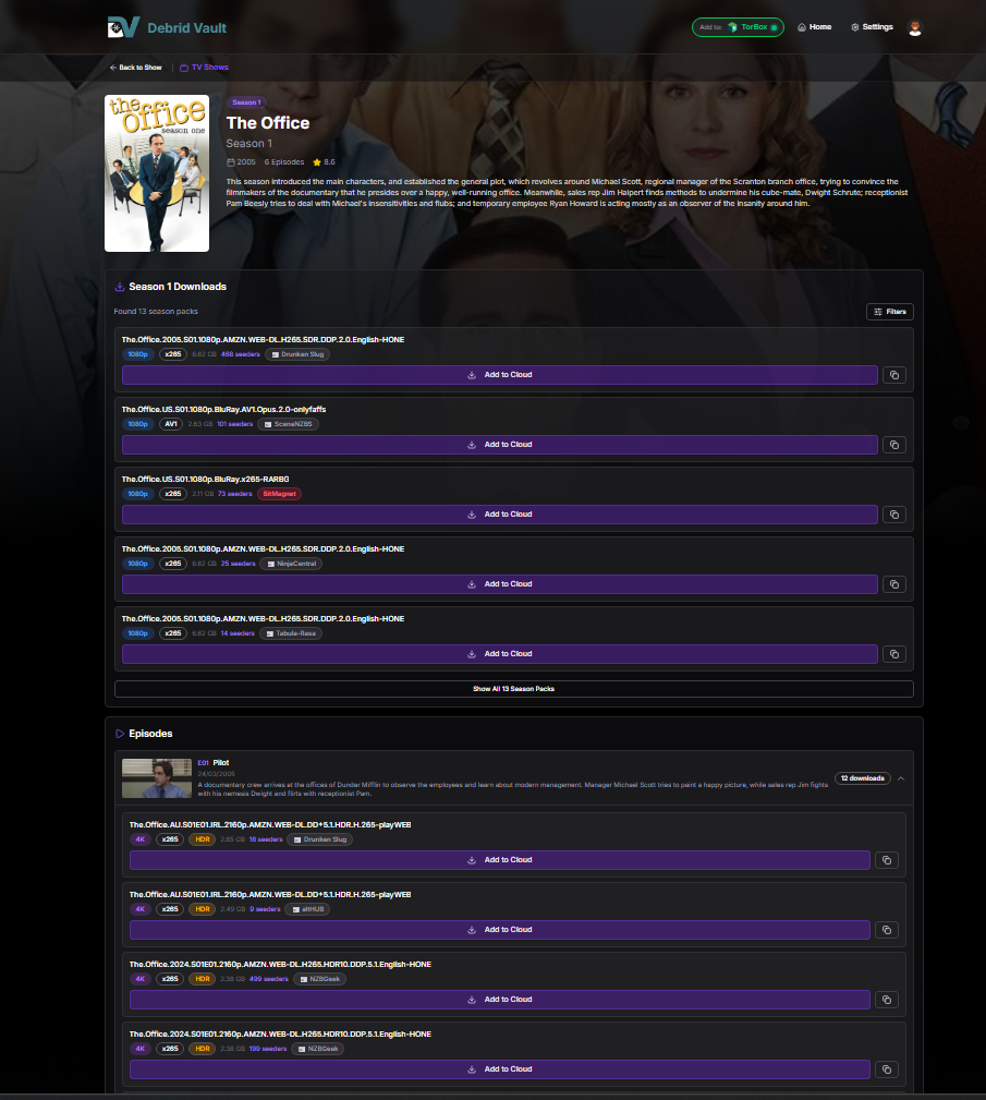 | Use the intuitive UI to find TV shows and movies quickly. Search and play your favorites without ever leaving Debrid Vault. | ![]() |